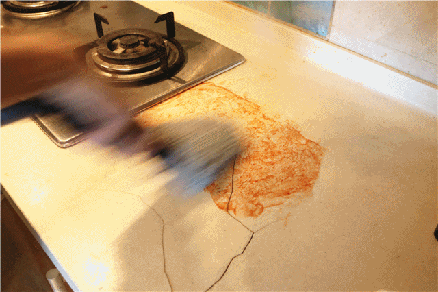 2.对于一般油污可用清洁剂或者肥皂水,抹在台面再用百洁布进行擦拭。